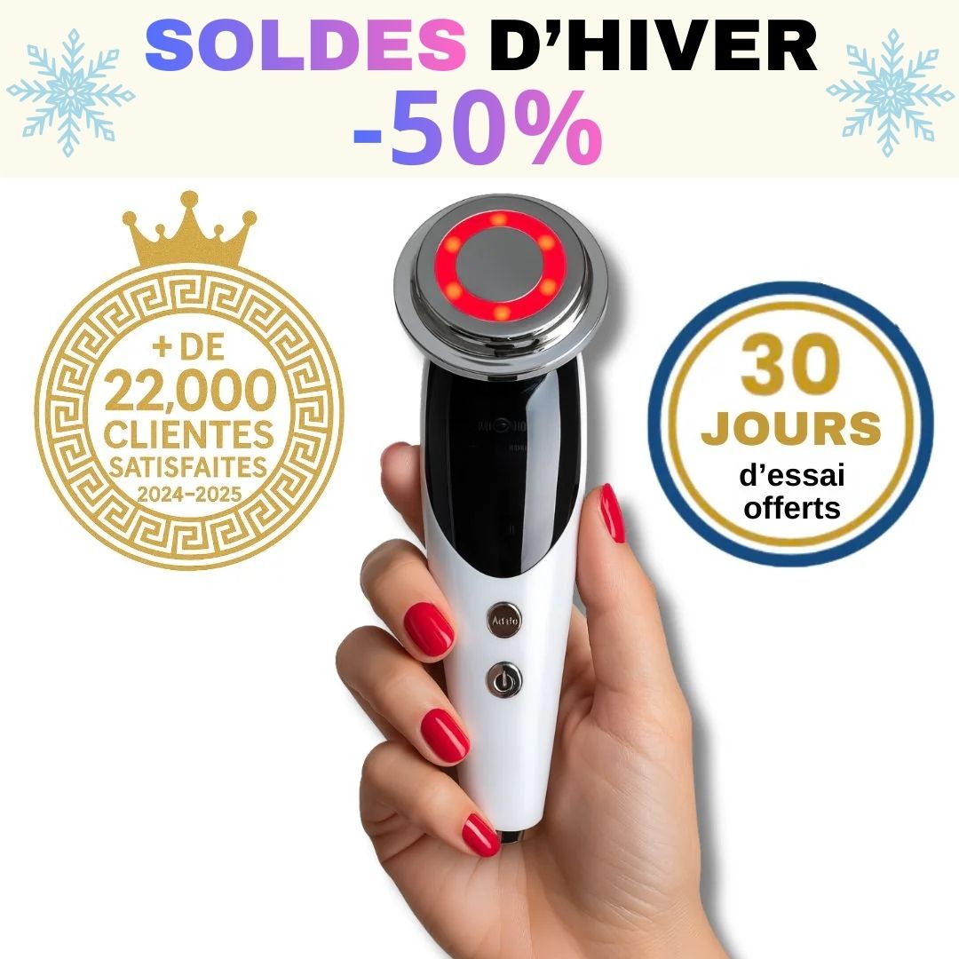 Énergie RF (radiofréquence), Lumière LED, infrarouge (IR) et EMS (électrostimulation).